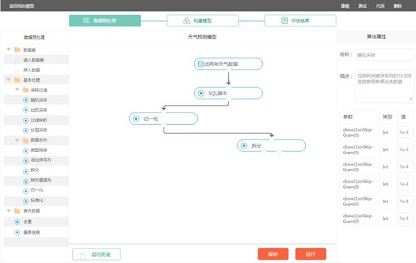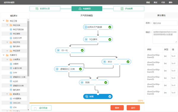 用戶全程無(wú)需編寫代碼即可完成機(jī)器學(xué)習(xí)計(jì)算任務(wù)。友好的WEB交互式界面,用戶可選擇算法,搭建包含數(shù)據(jù)預(yù)處理、特征工程及機(jī)器學(xué)習(xí)算法的工作模型,填寫算法參數(shù)并選擇計(jì)算資源,即可完成所設(shè)定的工作流程,由服務(wù)器計(jì)算任務(wù)結(jié)果并展示結(jié)果。