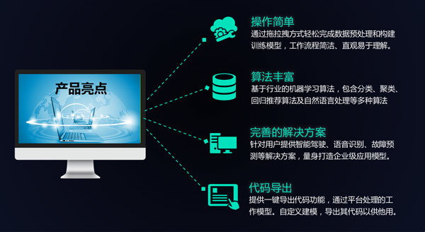 普開人工智能實(shí)驗(yàn)室——操作簡(jiǎn)單、算法豐富、支持代碼導(dǎo)出,提供多種企業(yè)應(yīng)用級(jí)模型,基于行業(yè)的機(jī)器學(xué)習(xí)多種算法,通過(guò)拖拉拽方式輕松完成數(shù)據(jù)預(yù)處理和構(gòu)建訓(xùn)練模型,流程簡(jiǎn)潔,直觀易懂,還體用一鍵導(dǎo)出代碼功能,通過(guò)平臺(tái)處理的工作模型自定義建模。