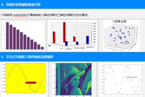 通過大量案例快速介紹Python運算符、表達式、內置函數(shù),列表、元組、字典、集合,選擇結構與循環(huán)結構,函數(shù)定義與使用,字符串與正則表達式等內容。學習完這些基礎內容之后,重點學習文本文件操作、json文件操作、CSV文件操作、Word文件操作、Excel文件操作、網(wǎng)絡爬蟲原理與應用、numpy數(shù)組運算與矩陣運算、pandas數(shù)據(jù)分析、matplotlib數(shù)據(jù)可視化以及sklearn機器學習等方面的內容。
