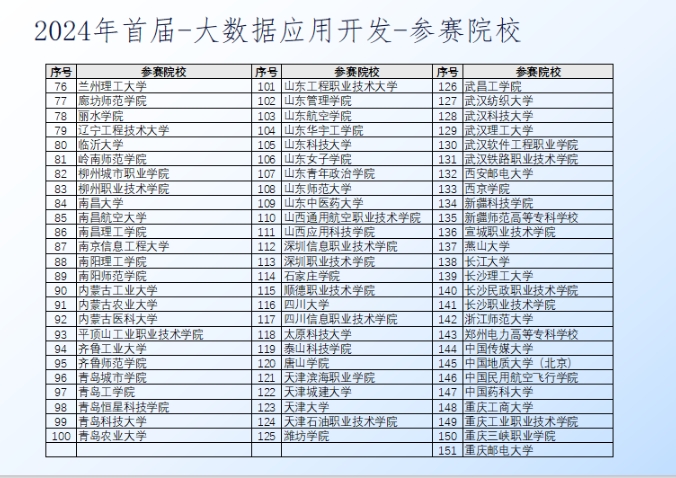 “睿抗機器人大賽 —— 信創(chuàng)大數(shù)據(jù)應(yīng)用開發(fā)賽項”為教育部競賽白名單(A類賽),去年普開數(shù)據(jù)同樣作為技術(shù)支持單位,已經(jīng)成功舉辦2024年賽項,25個省,110所高校,共1344支隊伍參與信創(chuàng)大數(shù)據(jù)應(yīng)用開發(fā)賽項。