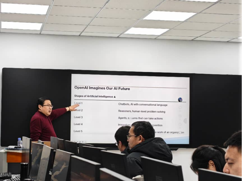 作為本次培訓(xùn)的核心主講人,劉生憑借在人工智能領(lǐng)域的深厚積淀與豐富實踐經(jīng)驗,以《人工智能通識課師資培訓(xùn)內(nèi)容與教學(xué)方法》為主題,為參訓(xùn)教師帶來了系統(tǒng)性、實用性兼具的專業(yè)指導(dǎo)。培訓(xùn)中,劉生圍繞人工智能基礎(chǔ)概念、機器學(xué)習(xí)原理、深度學(xué)習(xí)應(yīng)用及自然語言處理與計算機視覺入門等核心知識點,結(jié)合行業(yè)前沿案例進(jìn)行深度拆解,幫助教師們快速構(gòu)建 AI 知識體系。同時,針對通識課教學(xué)痛點,他重點分享了案例教學(xué)、項目驅(qū)動、互動研討、實操演練四大高效教學(xué)方法,引導(dǎo)教師們探索適配不同專業(yè)的 AI 教學(xué)模式,切實提升課程設(shè)計與教學(xué)實施能力。