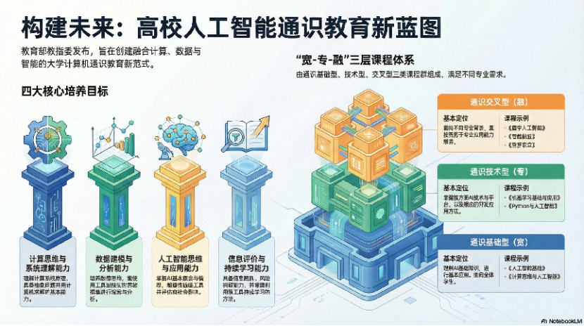 行動計劃明確全方位推進(jìn)人工智能人才培養(yǎng)與全民素養(yǎng)提升,實現(xiàn)全學(xué)段、全社會覆蓋。在基礎(chǔ)教育領(lǐng)域,完善中小學(xué)人工智能通識教育指南,推動 AI 全面納入地方課程,開齊開足開好相關(guān)課程,強化跨學(xué)科教學(xué)與教育基地建設(shè),助力城鄉(xiāng)教育優(yōu)質(zhì)均衡;高等教育層面,推動人工智能成為公共基礎(chǔ)課,優(yōu)化課程教材體系,深化學(xué)科交叉融合,培育拔尖創(chuàng)新與復(fù)合型人才;職業(yè)教育聚焦傳統(tǒng)專業(yè)智能化升級,校企協(xié)同共建課程與實訓(xùn)基地,培養(yǎng)適配產(chǎn)業(yè)需求的高技能人才;同時面向全社會推進(jìn) AI 通識教育,依托國家智慧教育平臺開放資源,推行微專業(yè)、微證書,銜接學(xué)分銀行體系;全面提升教師智能素養(yǎng),制定標(biāo)準(zhǔn)、全覆蓋培訓(xùn),將 AI 納入師范生培養(yǎng)與教師資格考核,夯實師資保障。